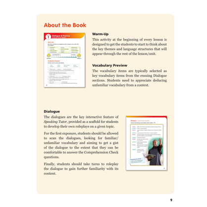 Speaking Tutoris a three-level series designed for high-beginner to intermediate level students. Speaking Tutorcan be used as a stand-alone textbook or accompaniment to Compass'e-Tutor multimedia online program. The content of Speaking Tutor covers a wide range of content-based topics and language material over twelve units per level.Speaking Tutoris designed to encourage the student to move from individualized self-study to cooperative pair-work and group-work interaction. Continued emphasis on presentations of increasing complexity helps the students gain confidence in speaking and provides valuable preparation for academic speaking situations that students are going to face at school and college.Speaking Tutoris perfectly placed to meet the requirements of English-only speaking environments.