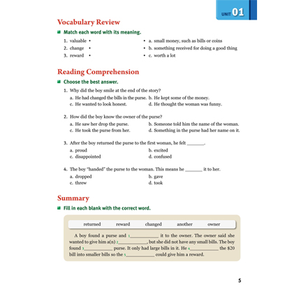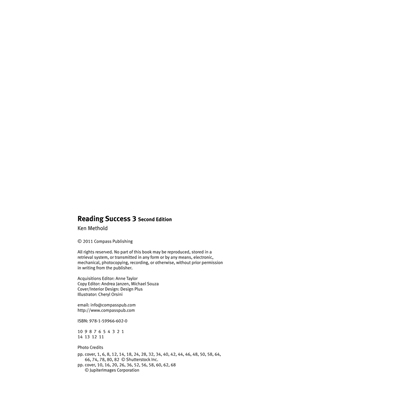 Reading Success, Second Editionis a six-book reading series designed to help young English language learners develop reading fluency through basic texts written in natural English. The course progresses from beginner to intermediate levels.The Reading Success series presents a wide variety of fiction and non-fiction texts on topics ranging from daily life to current affairs. Each topic is presented in an interesting and engaging way and is designed to promote familiarity with all kinds of writing.