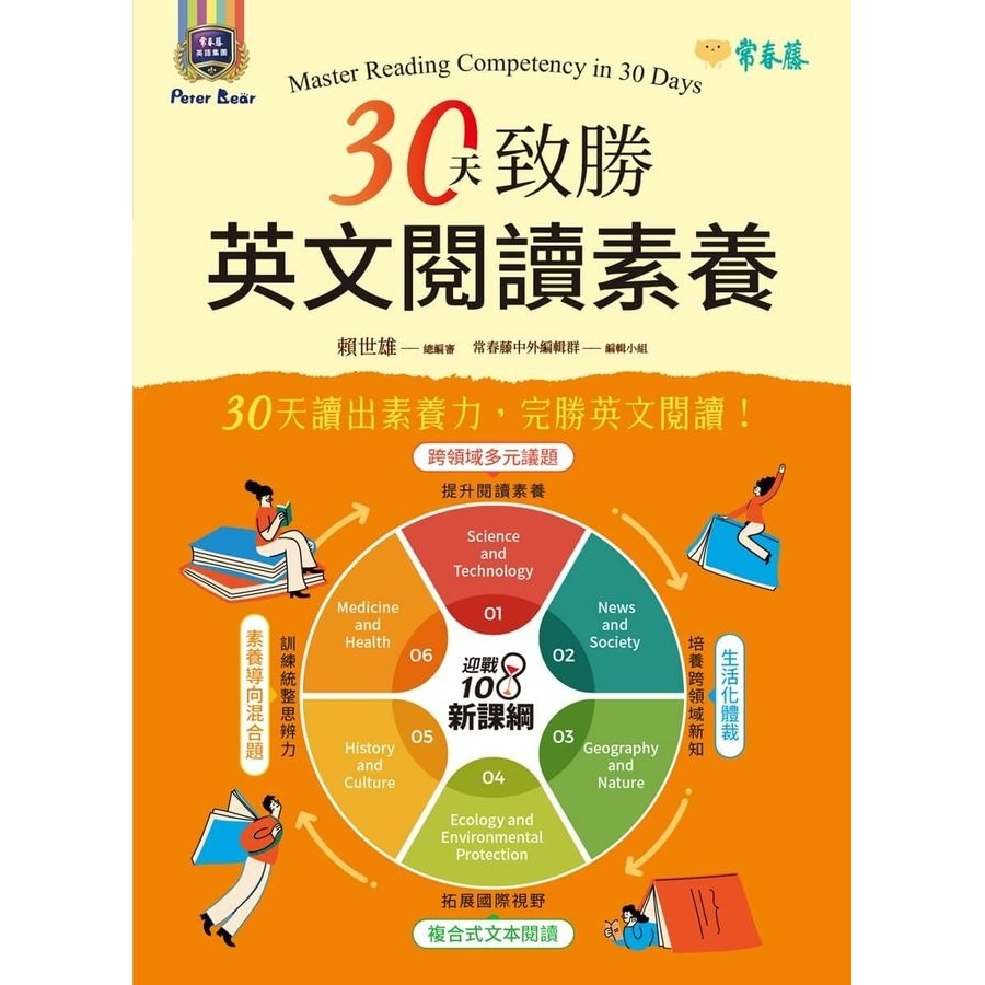 期許《30天致勝英文閱讀素養》能幫助學生提升核心素養,一天一篇,30天讀出素養力,完勝英文閱讀!