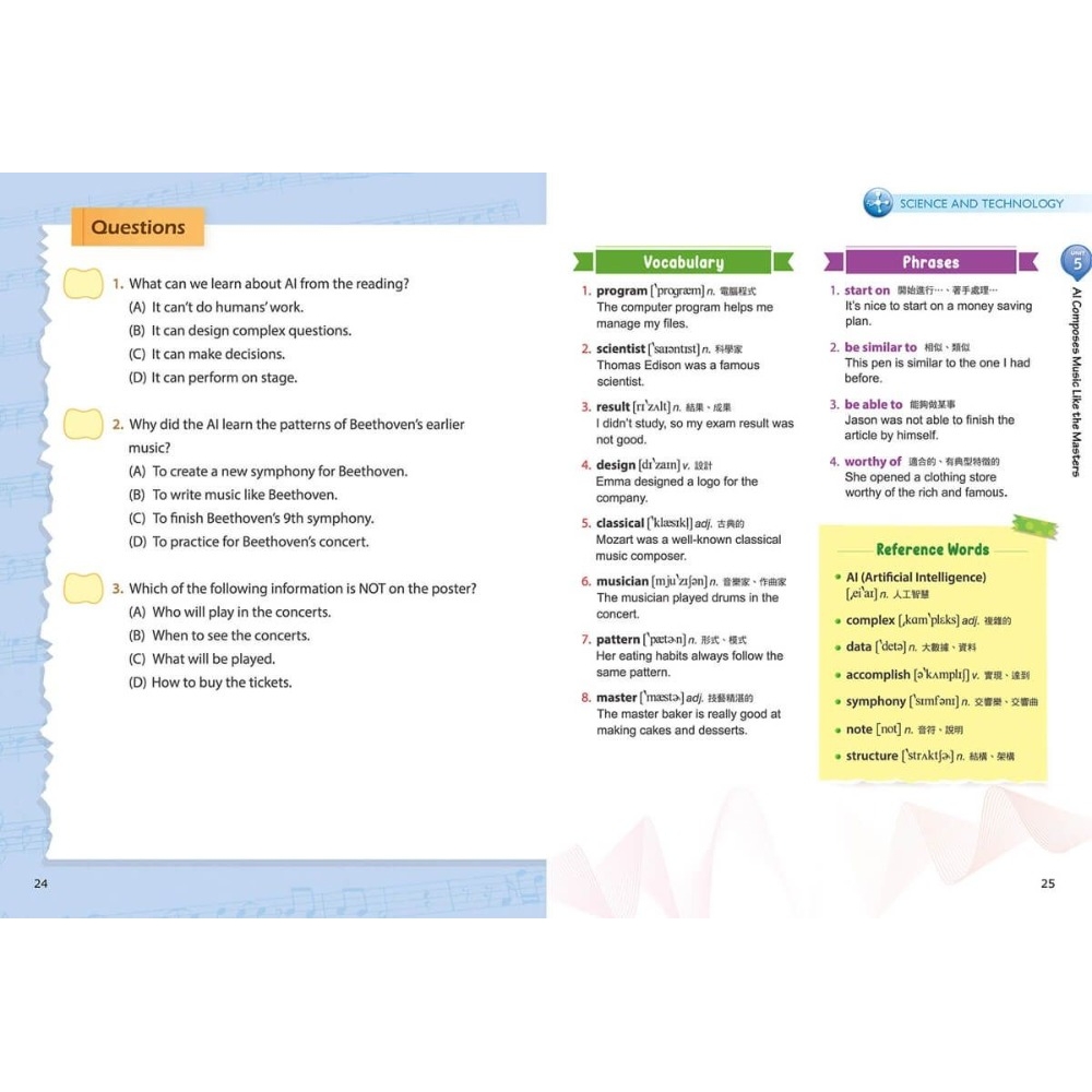 ????延伸學習掌握核心詞彙:統整文本內單字片語,搭配定義與例句,掌握各領域的核心詞彙。