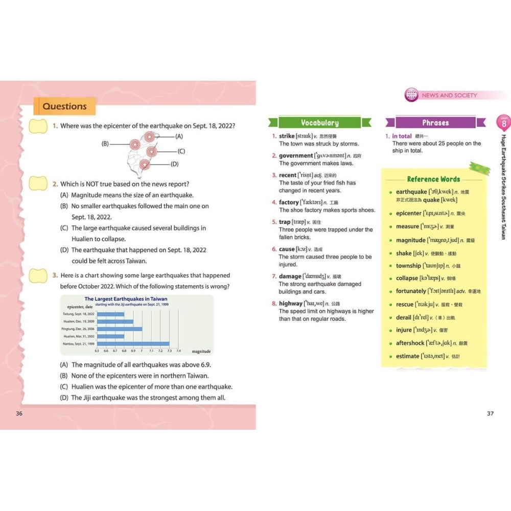 ????複合式文本資訊多元:文本結合常見圖表,包括路線圖、折線圖、地圖等,加強圖表統整力。