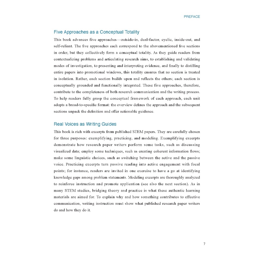 • Authentic material — Carefully chosen excerpts from STEM research papers illustrate how writers perform communicative tasks.