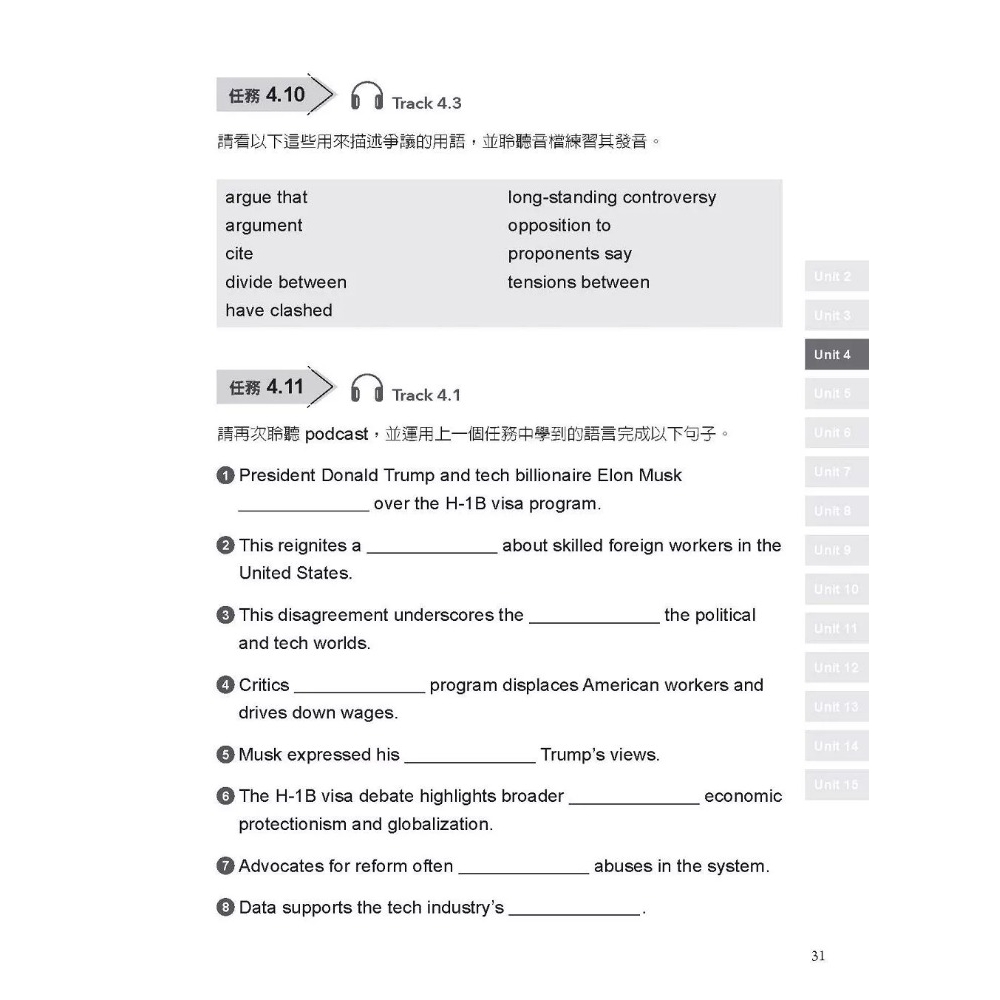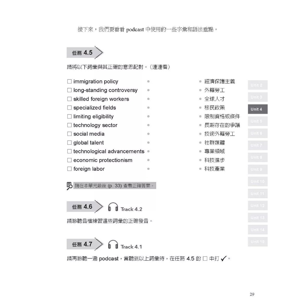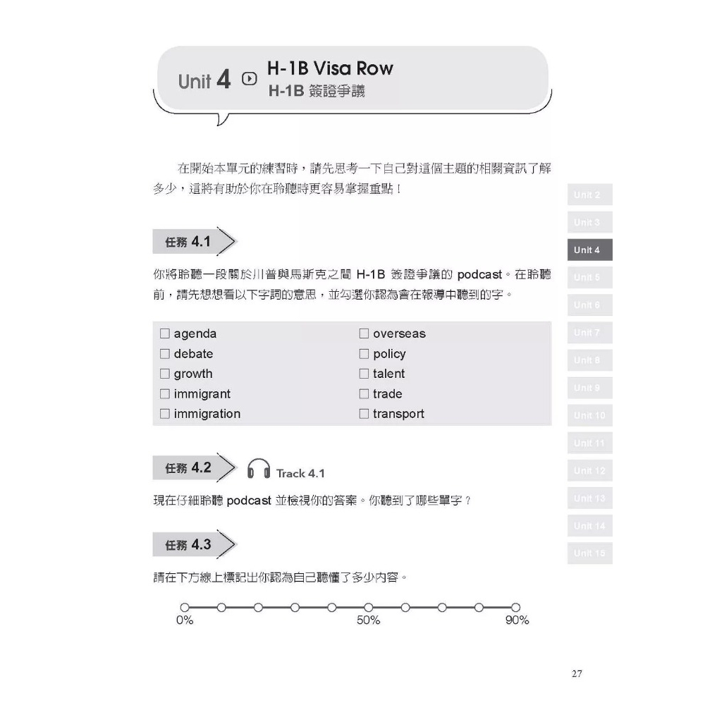 每一單元 = 真實語境 + 關鍵字彙 + 任務練習,確保你在「聽懂」之後,還能「說得出來」。