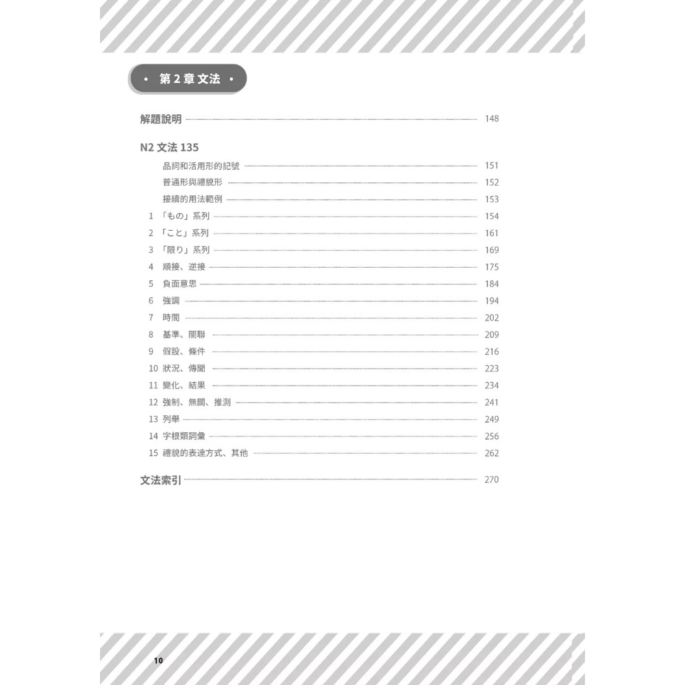 ◆ 135個N2必考文法項目,搭配練習題學習更全面