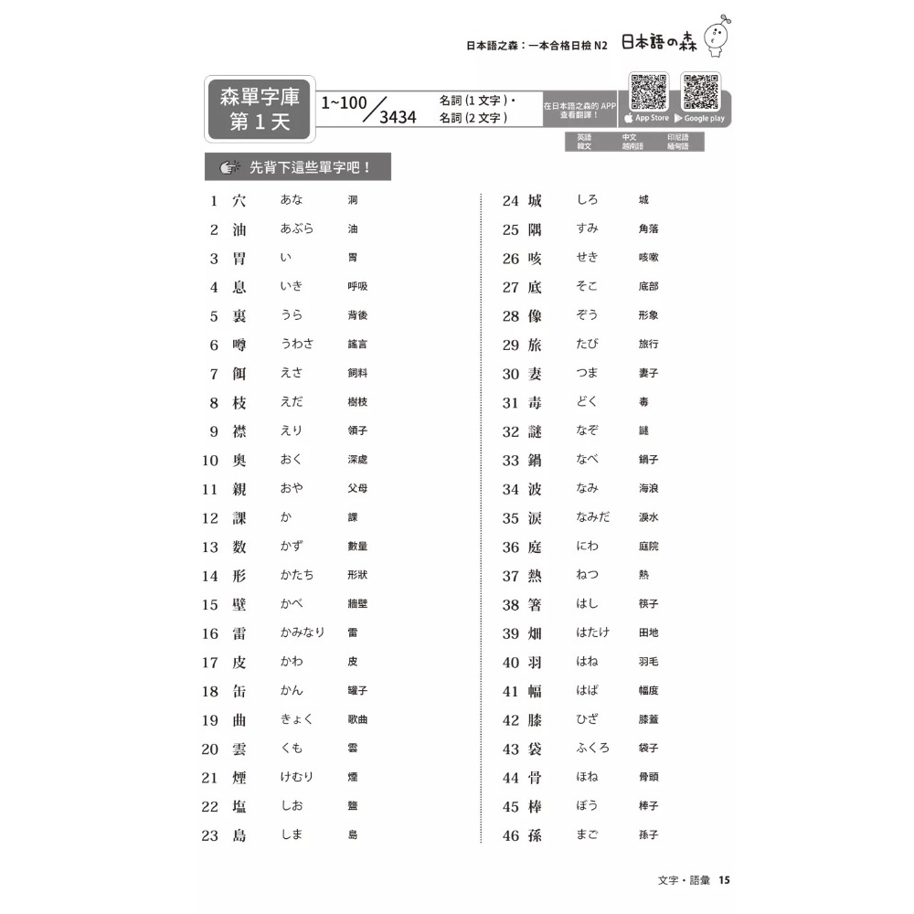 本書收錄日檢N2的必備單字與文法,搭配APP的朗讀功能更可以穩紮穩打地練習到聽力!此外更詳盡解說閱讀和聽力的解題祕訣,讓你在考場不手忙腳亂,有效掌握答題時間,培養快速且精準的作答實力!