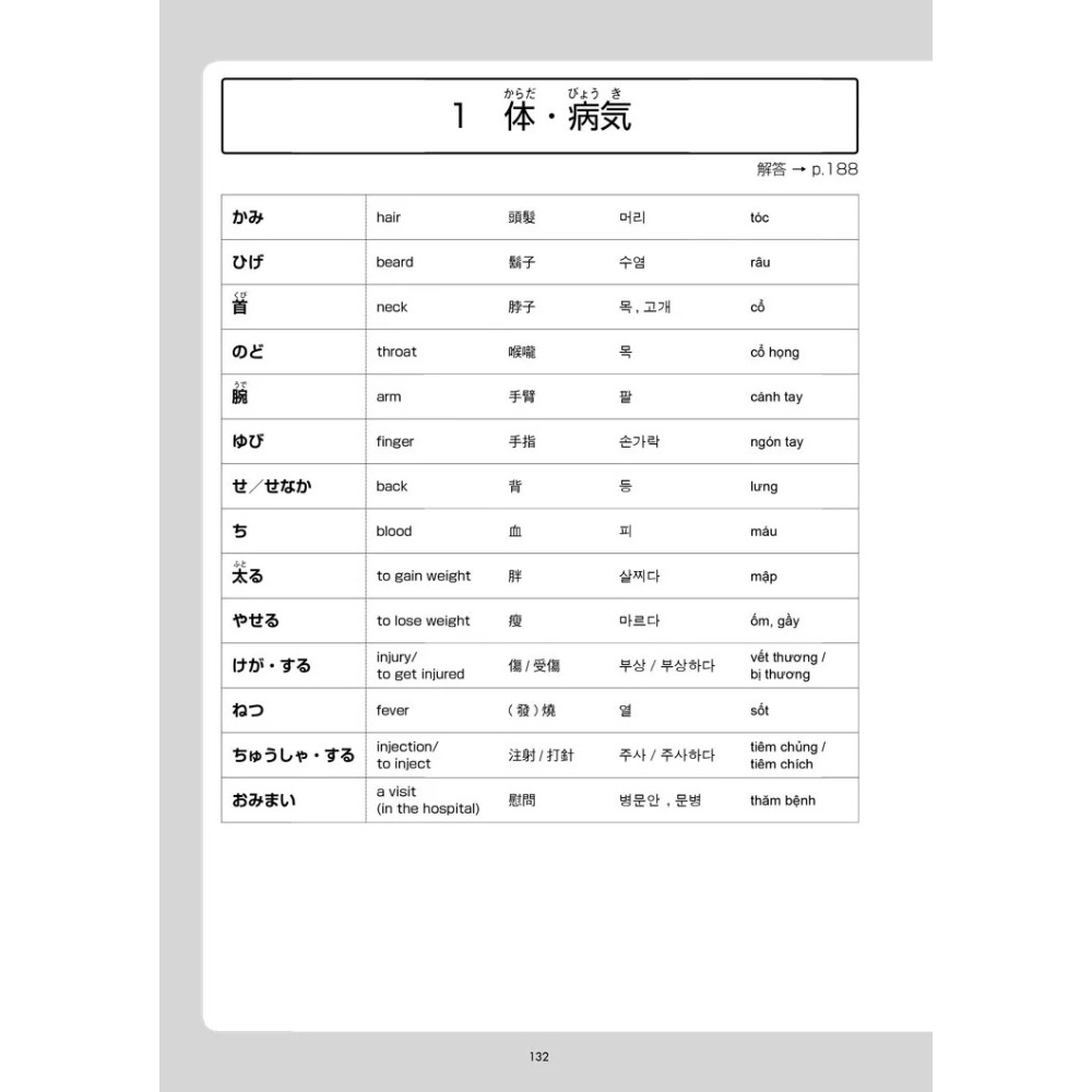於附錄彙整了模擬試題以外的重要語彙。為幫助考生能夠靈活運用,語彙依主題分類,並附上相關習題,以及英語、中文,越南語等四國翻譯。另收錄聽解考試常見的「自動詞、他動詞」、「敬語」等一覽表。