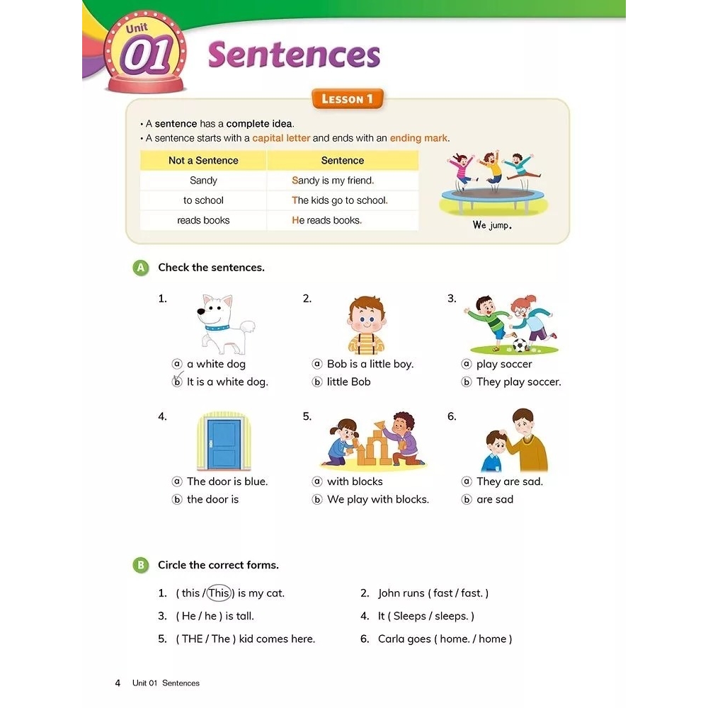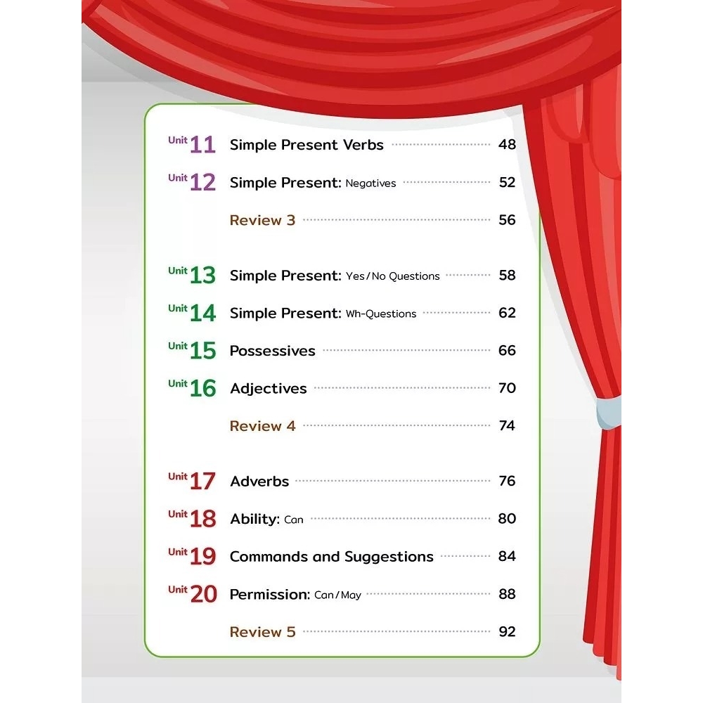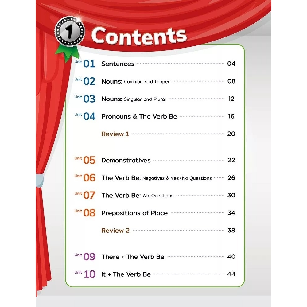 本系列套書共三冊,此為第一冊。每冊皆含學生本 (Student Book) 及練習本 (Workbook),著重於「由點到線、由線成面」的漸進式教學。每冊包含 20 個文法單元與 5 個複習單元,從單字延伸到句子、對話,再到段落與生活化寫作,讓文法學習不只是「記憶」,更是「應用」。教材內容安排上,學習主題與字彙難度都以螺旋式編排,不斷重複、深化與擴展,幫助學生建立語言邏輯與英文思維。