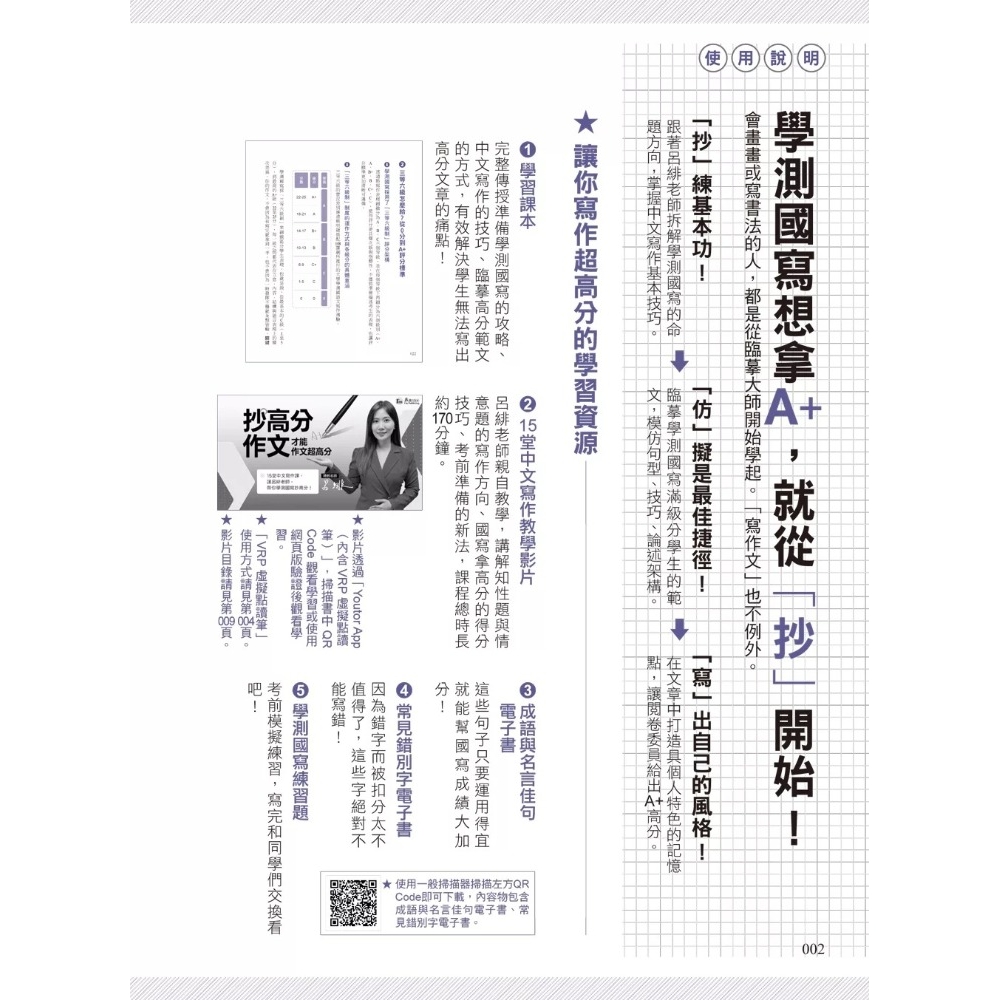 呂緋老師帶你破解學測國寫題,只要跟著搭配《抄高分作文》附贈的數位資源進行學習,就能輕鬆在國寫拿到高分。
