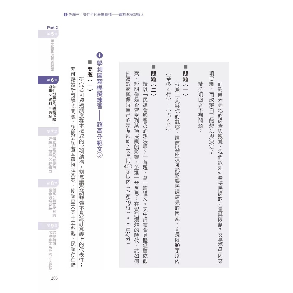 本書特邀4 位學測國寫滿級分學生撰寫範文,