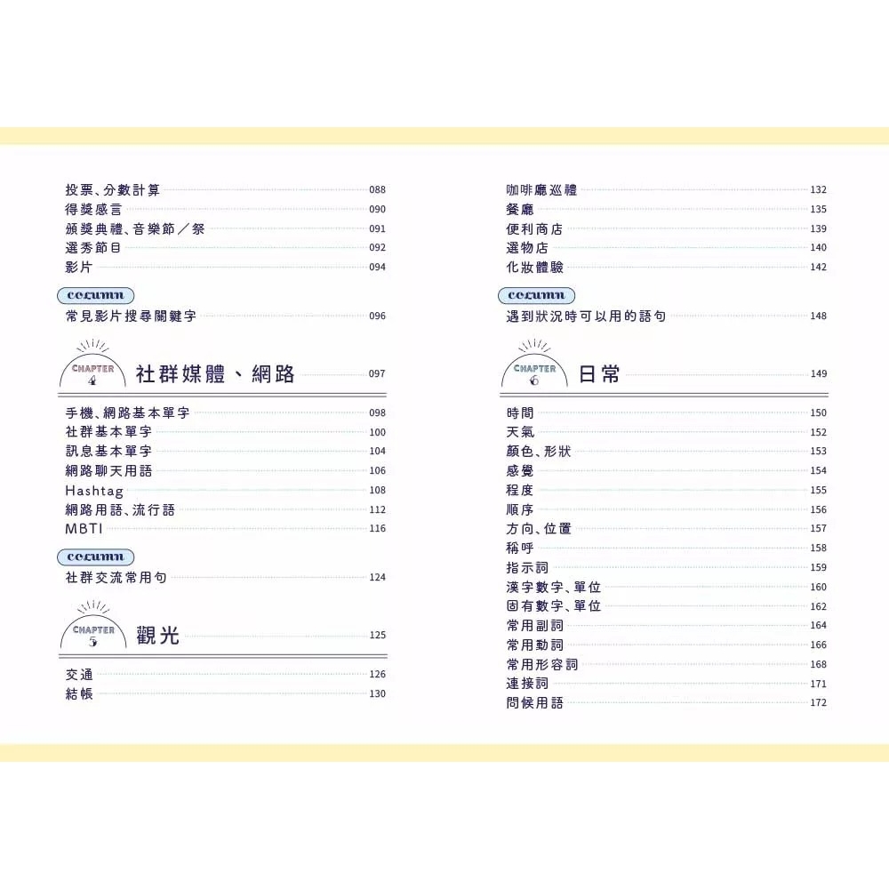 不教「你來自哪裡」、「我想吃大醬鍋」,也沒有自動詞、冠形詞等複雜文法,只有追星和社群常用單字,還有韓國人最愛用的流行語和縮略語,讓你和本命更靠近!