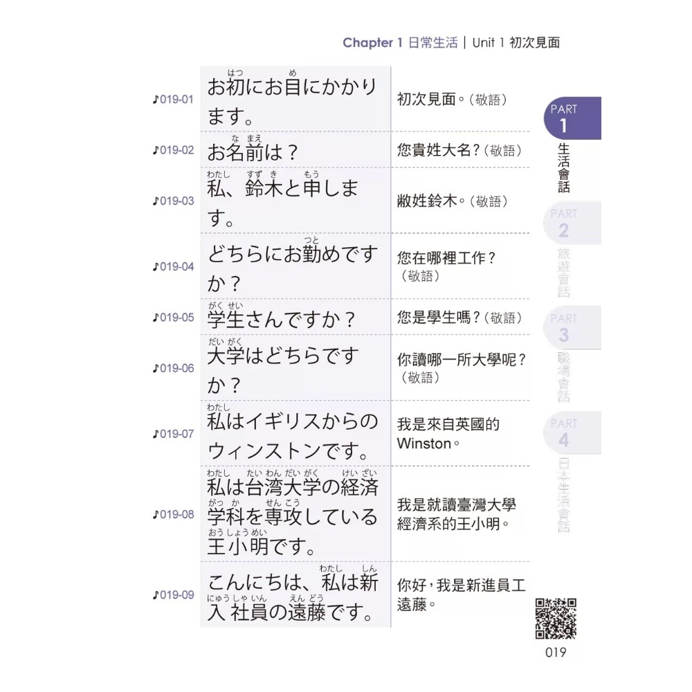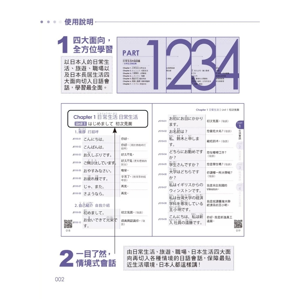 以日常生活、旅遊、職場、日本生活四大面向切入,再帶入各種情境,實用度最高。