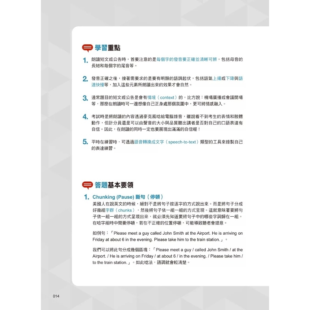→ 聽音檔的發音及語調,再依照自己的速度,大聲且清楚地唸出來。