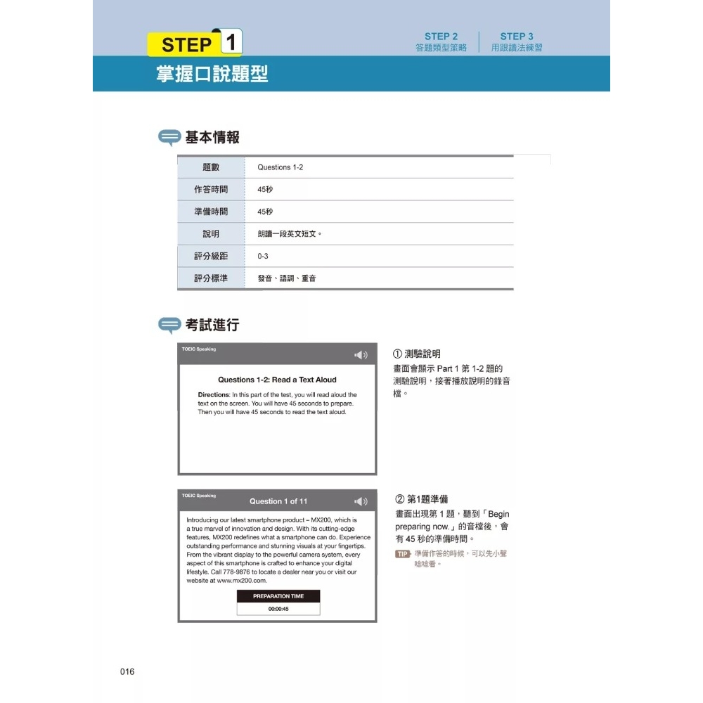 Step 2. 做三回口說測驗模擬試題