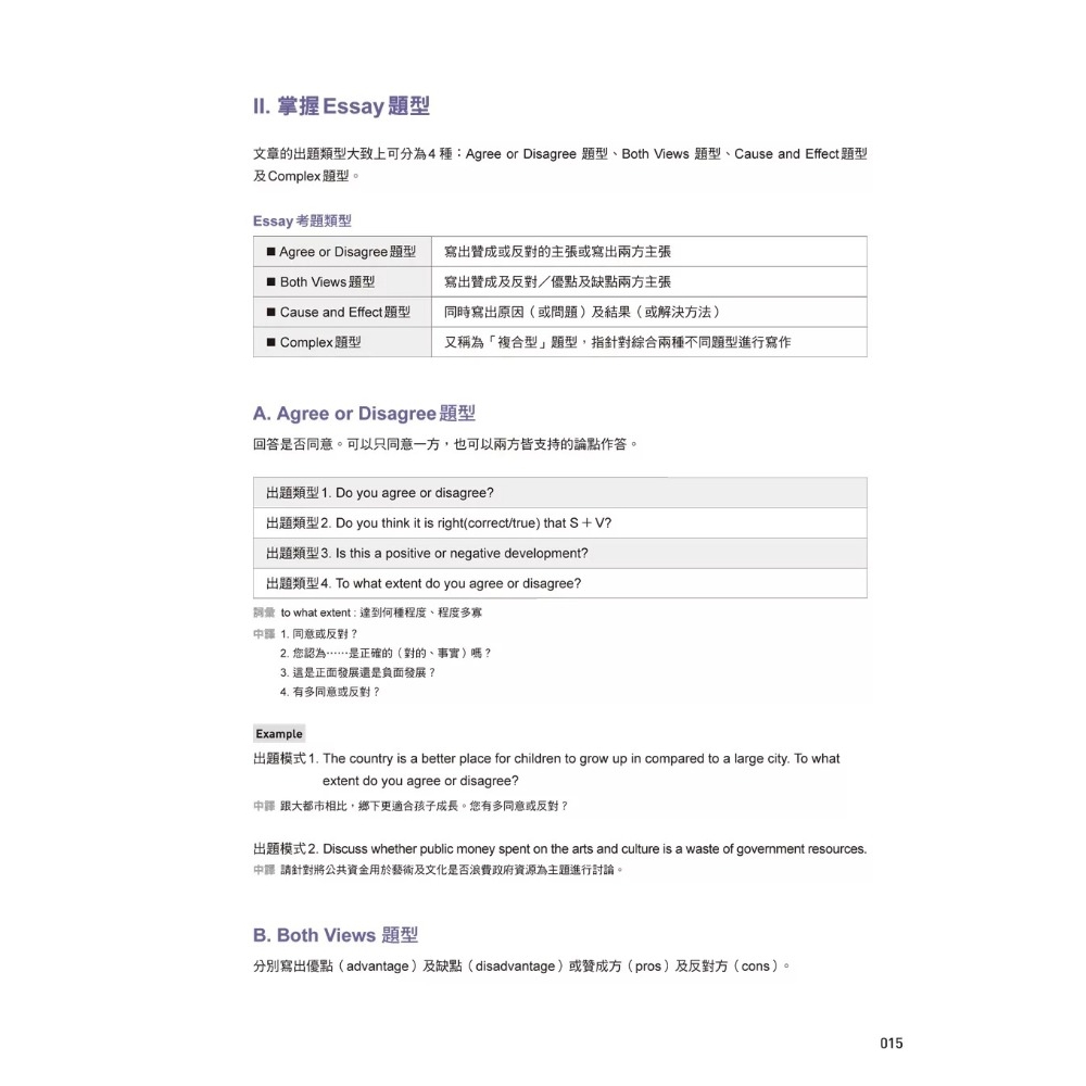精選「高頻考題」與「必背句型」,並歸納出多款臨場可直接套用的「應試模板」。無論是寫作或口說,都能靈活運用結構句與延伸表達,在考場中迅速組織答案、穩定發揮。