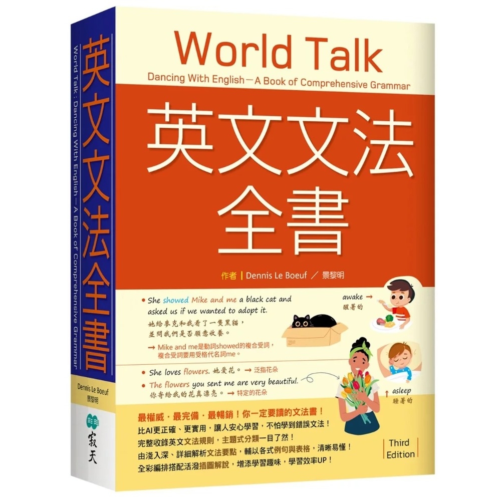 最專業、最權威的英文文法作者Dennis和景黎明的代表作《英文文法全書》暢銷改版!全書22個單元、128個次單元,收錄完整英文文法,從基本文法規則到進階用法,編撰詳盡解析與整理。本次改版秉持二版的編寫精神,增修符合現今社會的實用例句與解析,並新增活潑有趣的插圖,直觀加深理解文法,學習更有成效,讓你完美掌握英文文法規則!