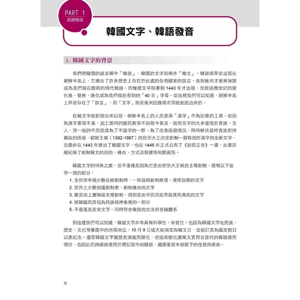 這些問題,通通會在本單元一一解答。在學習一個語言之前,必須先知道自己即將要學的語言究竟是什麼,才有面對挑戰的心理準備。在本單元,我們將一探韓語的真實面貌,將韓語的底細摸個仔細,這樣才能知己知彼,百戰百勝!