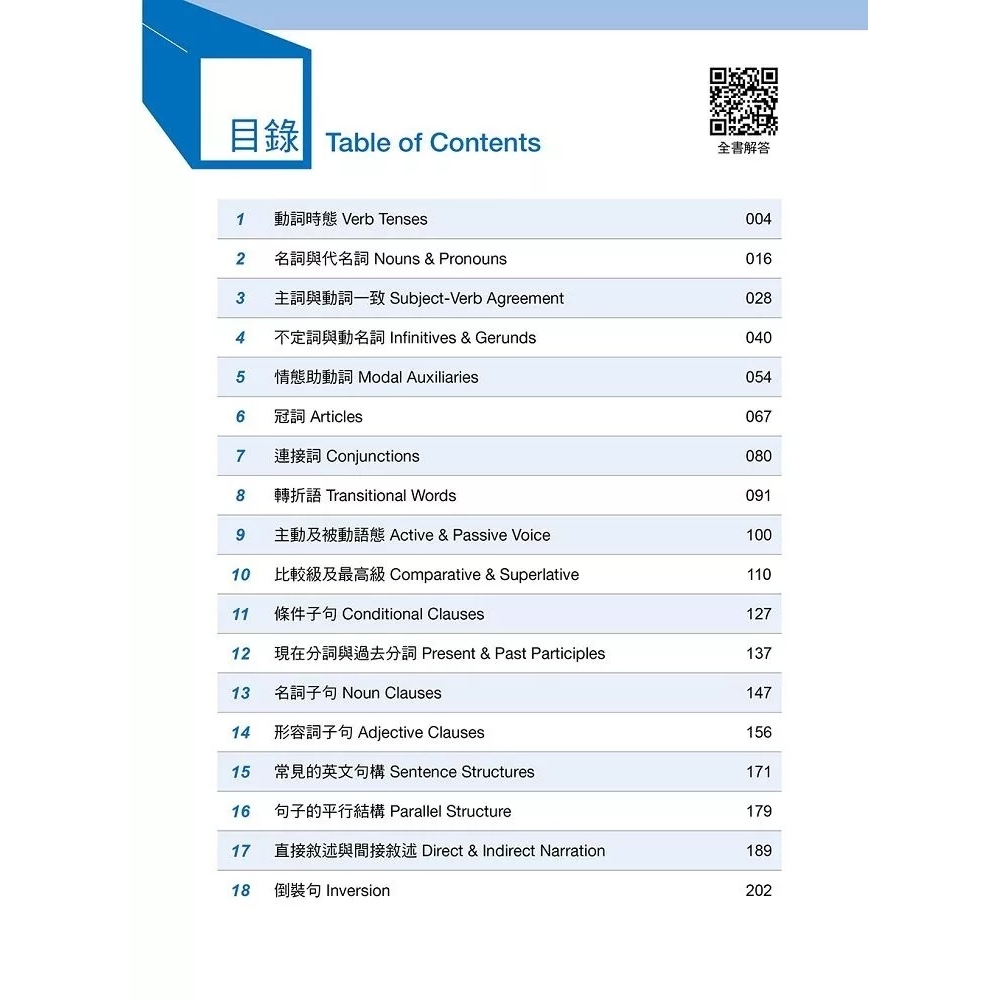 本書統整 18 個全民英檢中級必考的關鍵文法,每項文法重點皆提供實用例句,幫助學生熟悉文法使用時機與句型變化,釐清易錯的文法觀念。各單元練習題型豐富多元,從單句、段落到整篇文章,實際運用學到的文法知識,培養解析英文長篇閱讀的能力,提升英文閱讀速度,深化英檢應考實力。