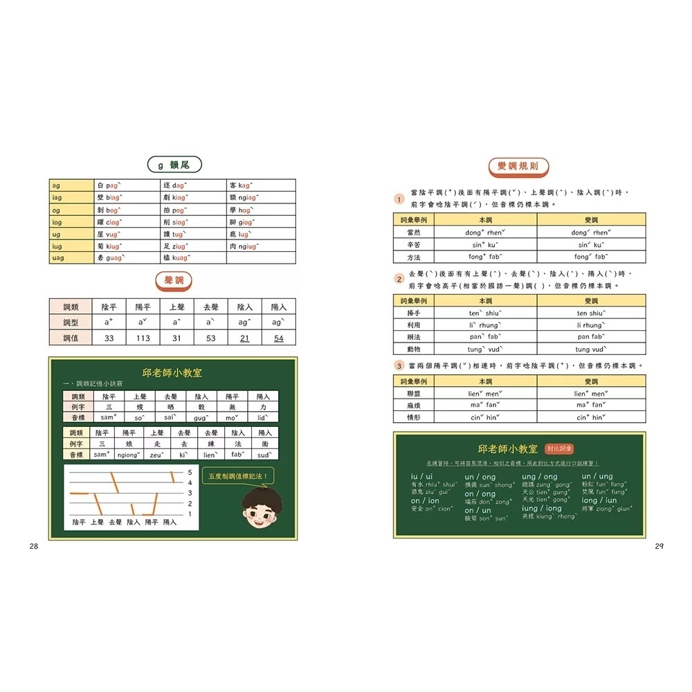2. 客語音標教學、食衣住行育樂生活詞彙、句子與23種常用句型,循序漸進學習。