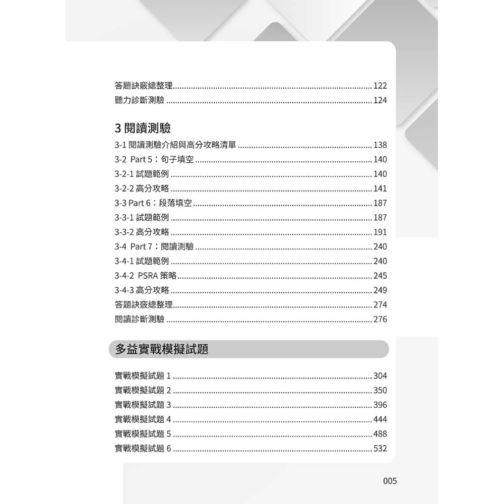 完全比照正規新制多益測驗精準命題,全方位破解聽力與閱讀測驗,