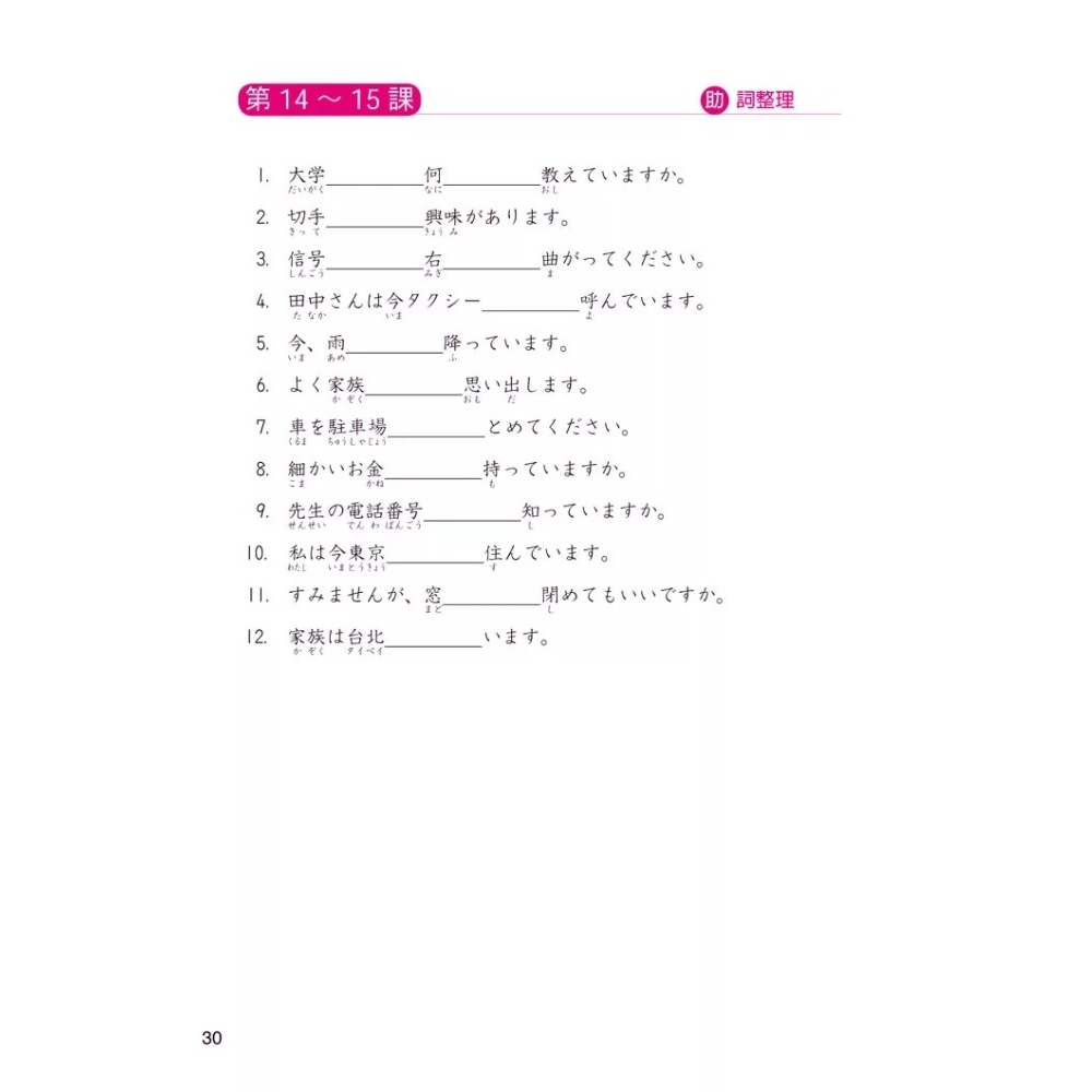 您是否在背完五十音及學了幾句日常會話之後,就很難提昇日語能力了呢?別擔心,本書是為了日語初級的學習者所編寫的教材,針對初學者會產生困難與挫折感的地方,將內容更生活化,例句以上班族、學生或家庭中常會運用到的會話為主,把文法的說明簡單化、口語化,讓學習者更容易吸收及記住重點之處。並且每三課就有一個助詞整理及練習,相信在透過這些內容練習之後,將能更快地融入普通會話的領域。