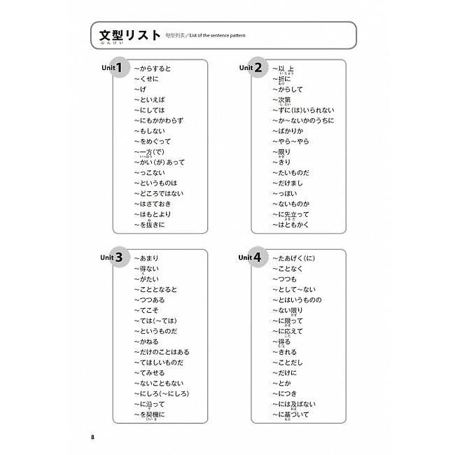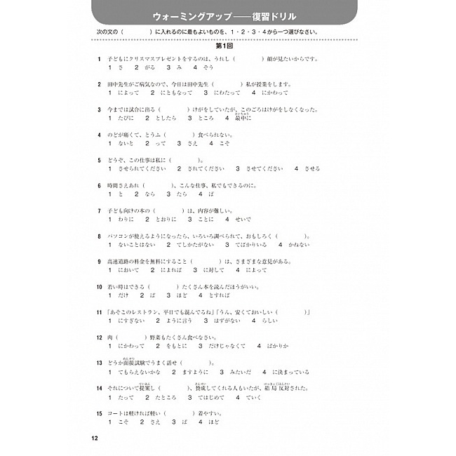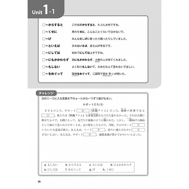本書中每個單元都會用文章填空題為主軸,讓你在做題的同時,學習句型在文章中的用法。文章內容有:「機器人」、「科學咖啡廳」、「江戶時代」、「婚活」等…活潑有趣!