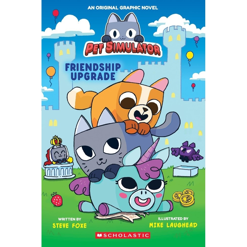 An action-packed, colorful graphic novel based on the globally popular game, Pet Simulator. Three pet-tastic stories in one!Join Whiskers the Cat, Ruffles the Dog, and Penny the Unicorn in their first graphic novel-style adventure! In the brightly colored pages, the friends go on a wild journey, in the best possible way. From a coin craze, to a spooktacular adventure, can our trio of pets make the Exquisite Cat happy? This original graphic novel is perfect for young readers.
