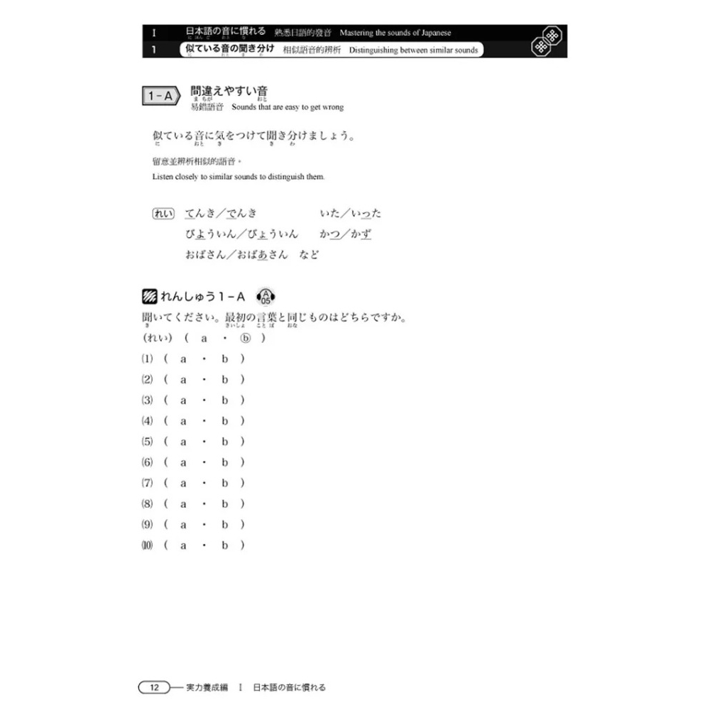 理解聽解形式為何,再透過每章例題輔助加深記憶力。另也加強說明聽解中較容易遇到挫折的要點。如:「辨析相似語音」、「注意動作主體」等。循序漸進引導學習者將知識融會貫通,自然養成聽解力!
