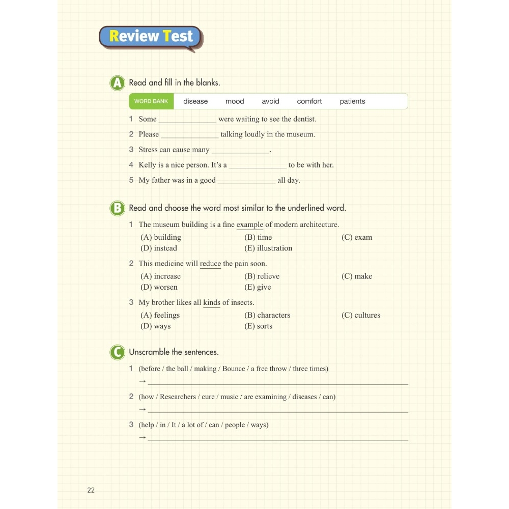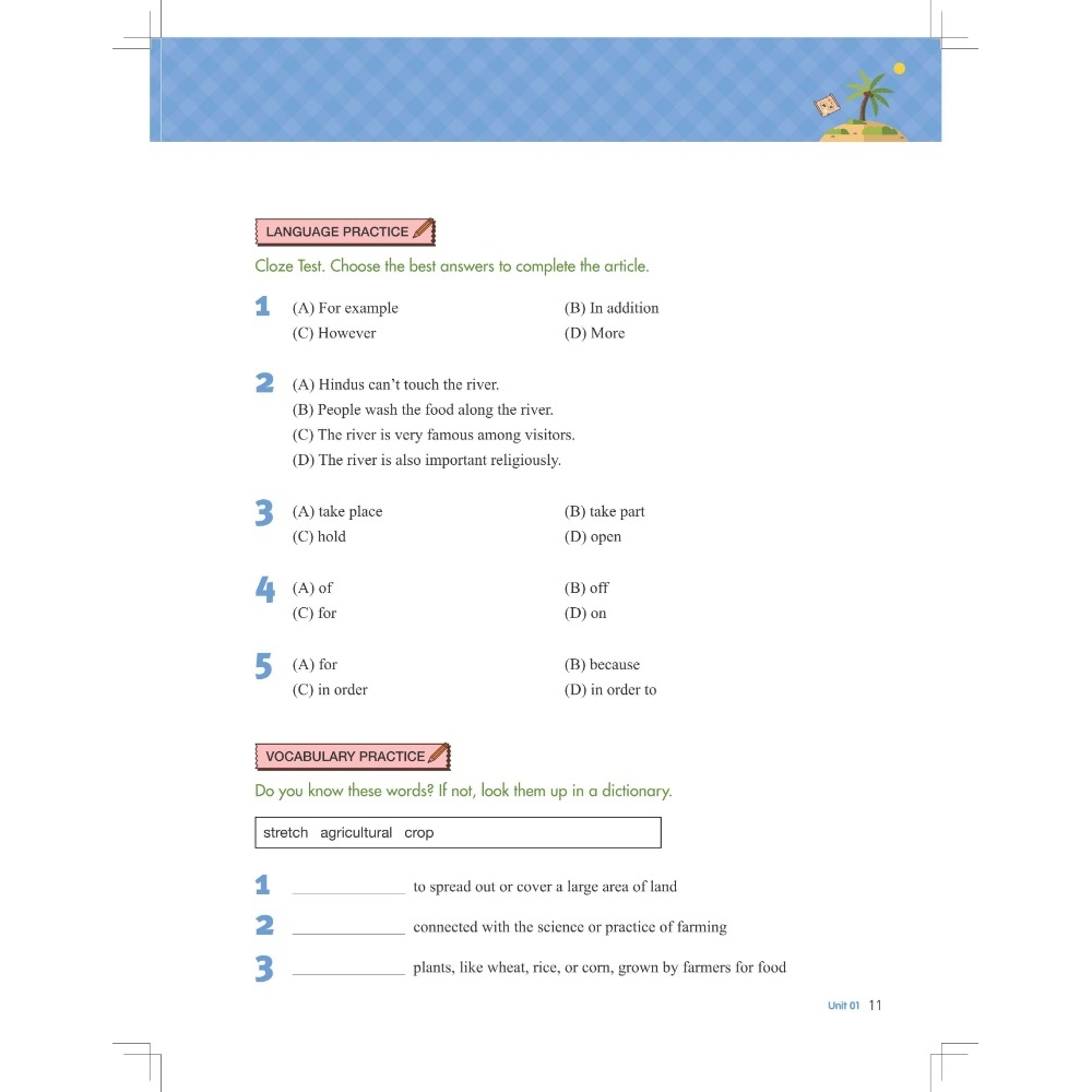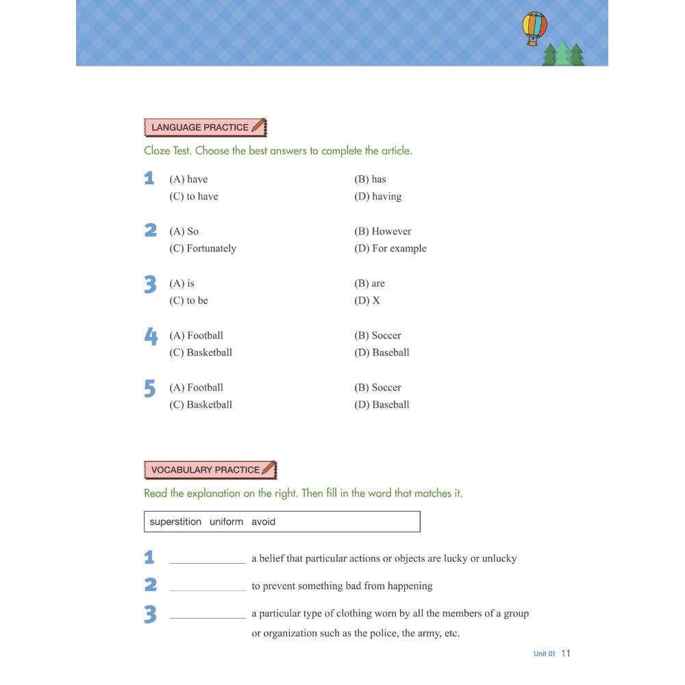 ◆練習多樣豐富:包含讀前引導、克漏字、字義配對、閱讀理解問題、聽力填空等