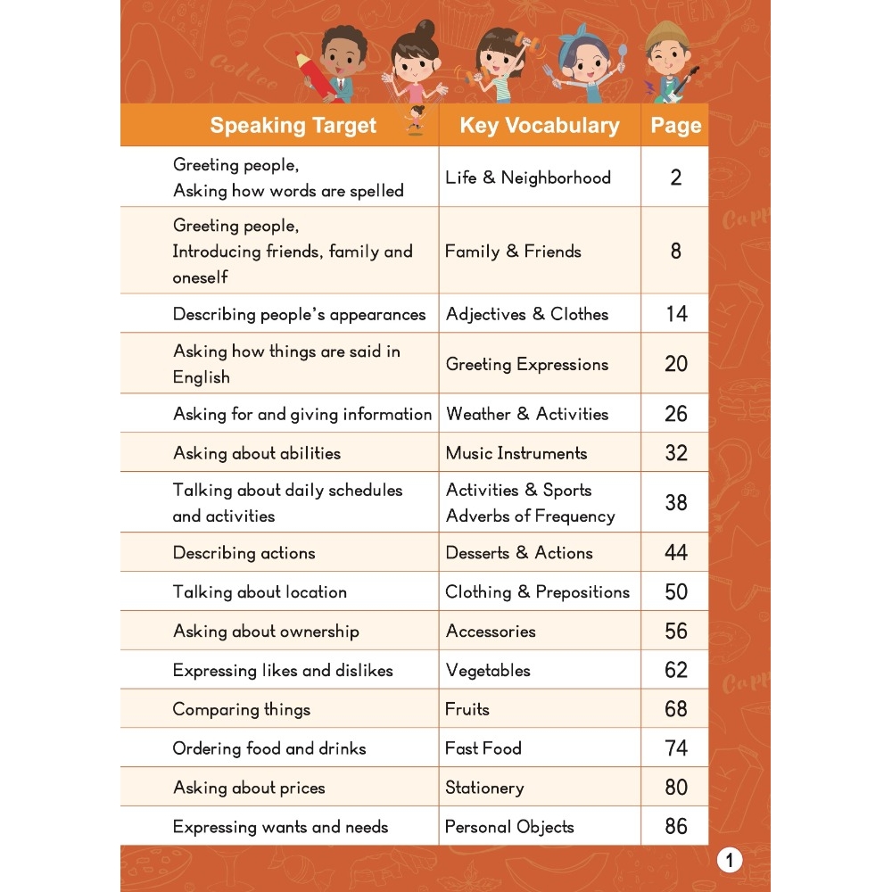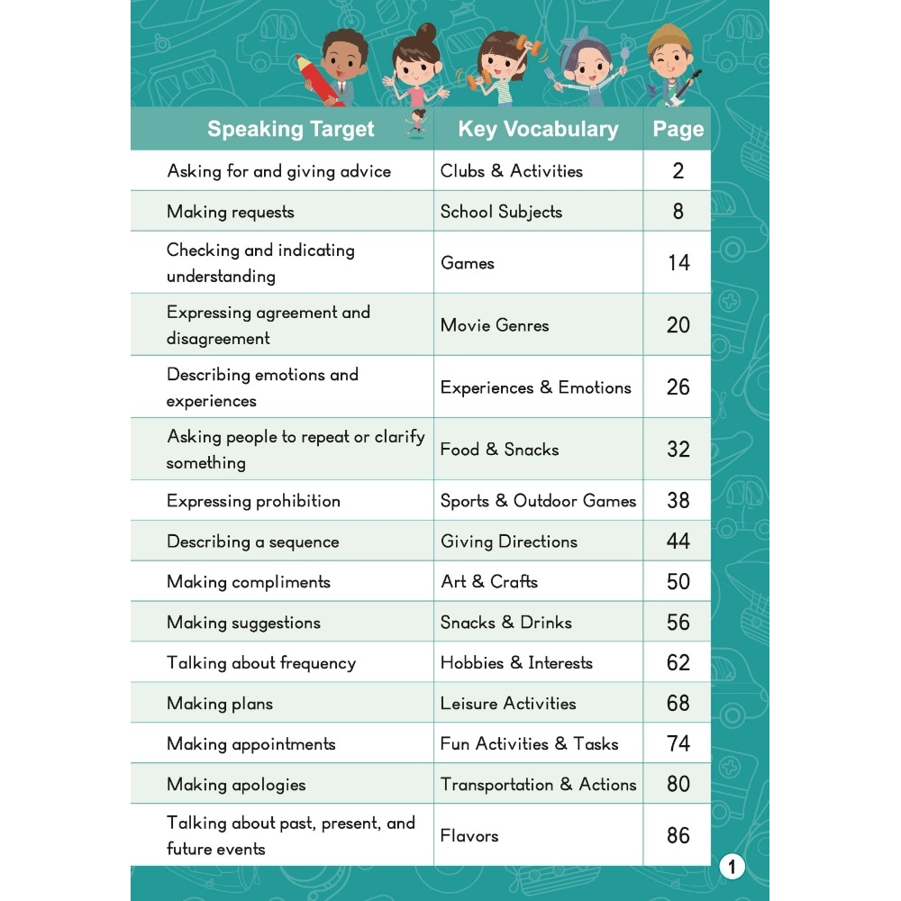 《Let's Speak!》是一套三冊式的英語口說教材,專為以英語為外語的國小學生設計。本系列透過有趣的活動與有結構的對話練習,提升學生的語言學習效果。每個單元聚焦在重要的溝通技巧,並提供完整的口說與聽力練習。本系列旨在幫助學生輕鬆快速地掌握日常英語溝通的基本能力。