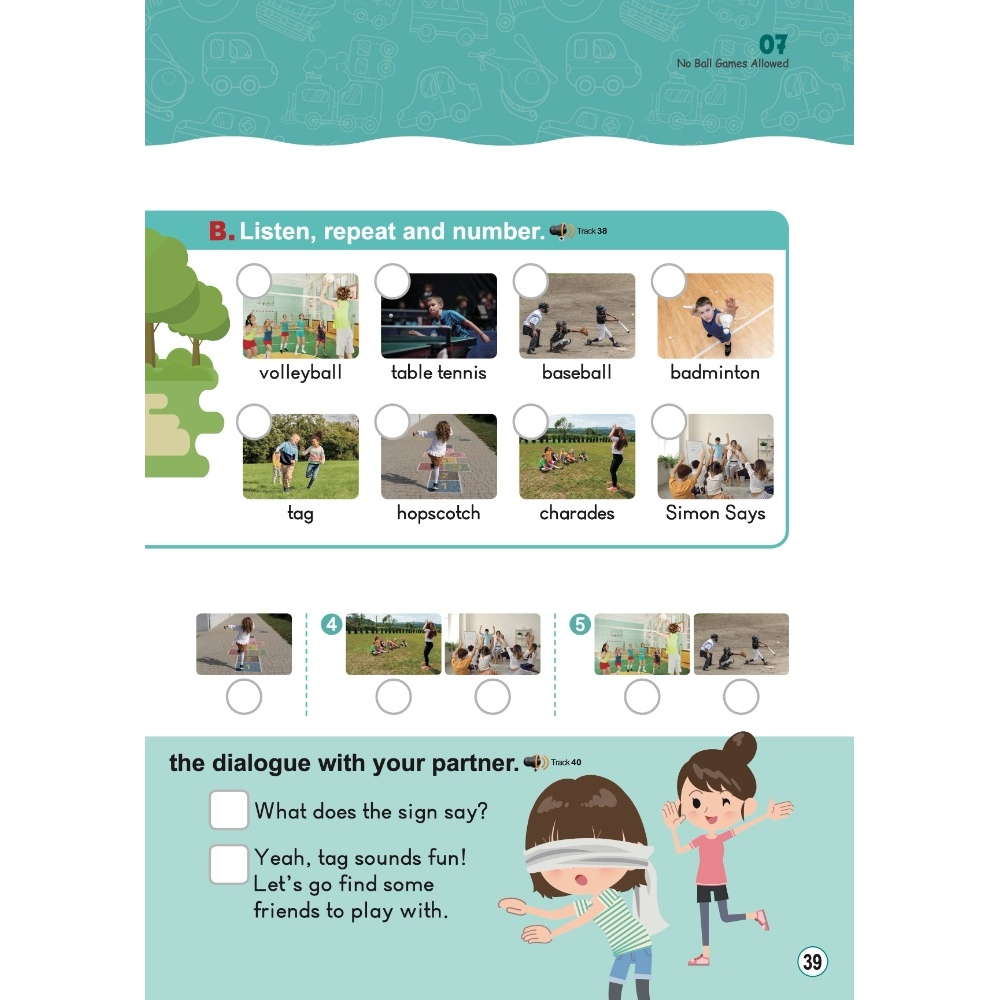 · 情境脈絡學習:搭配插圖的真實生活對話,幫助學生在情境中學習英語。