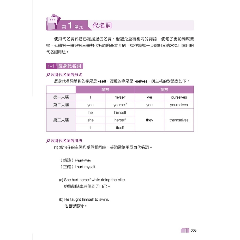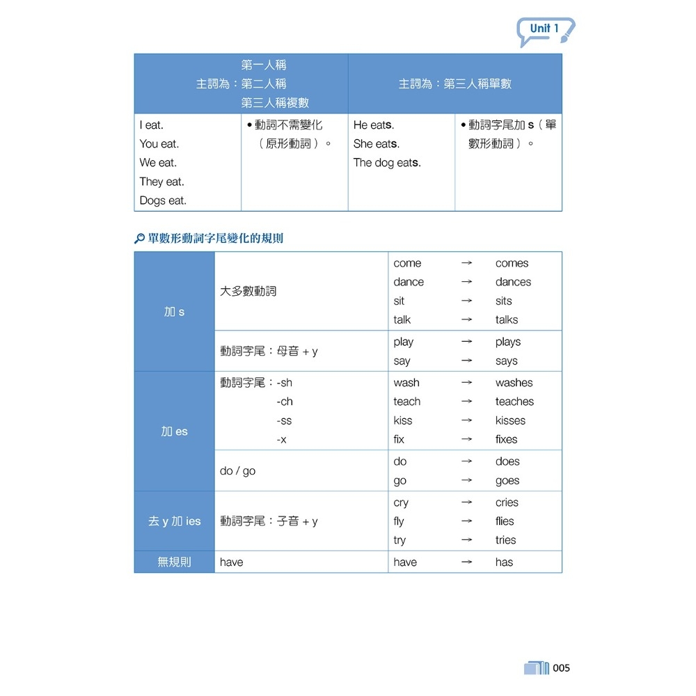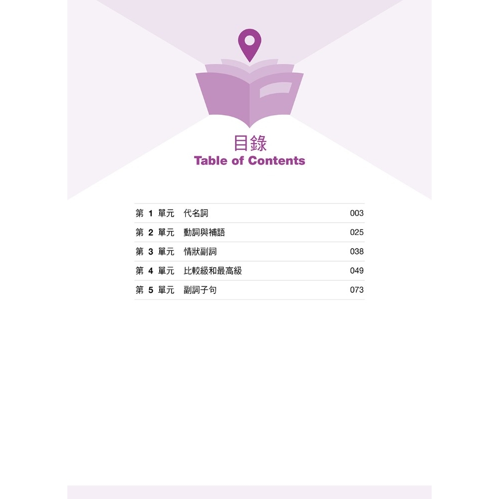 1.完全依據新課綱編寫,表格說明搭配例句,迅速熟悉文法句型。