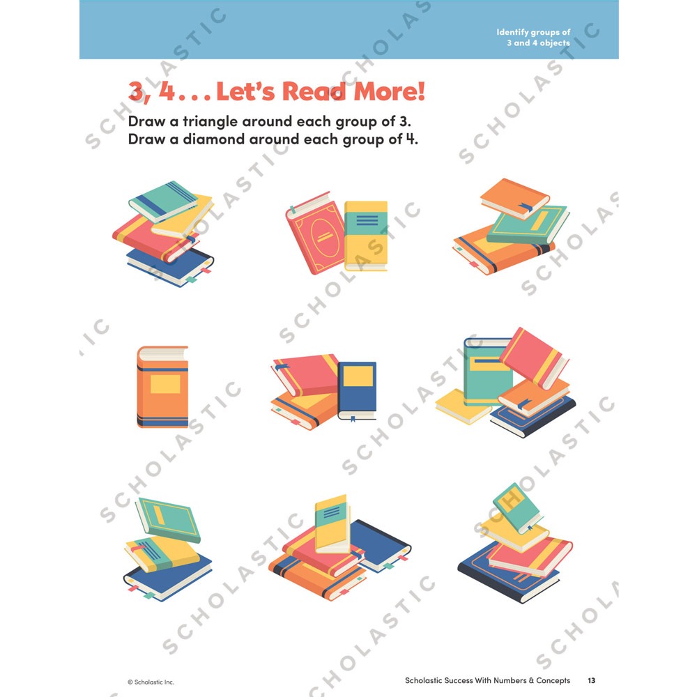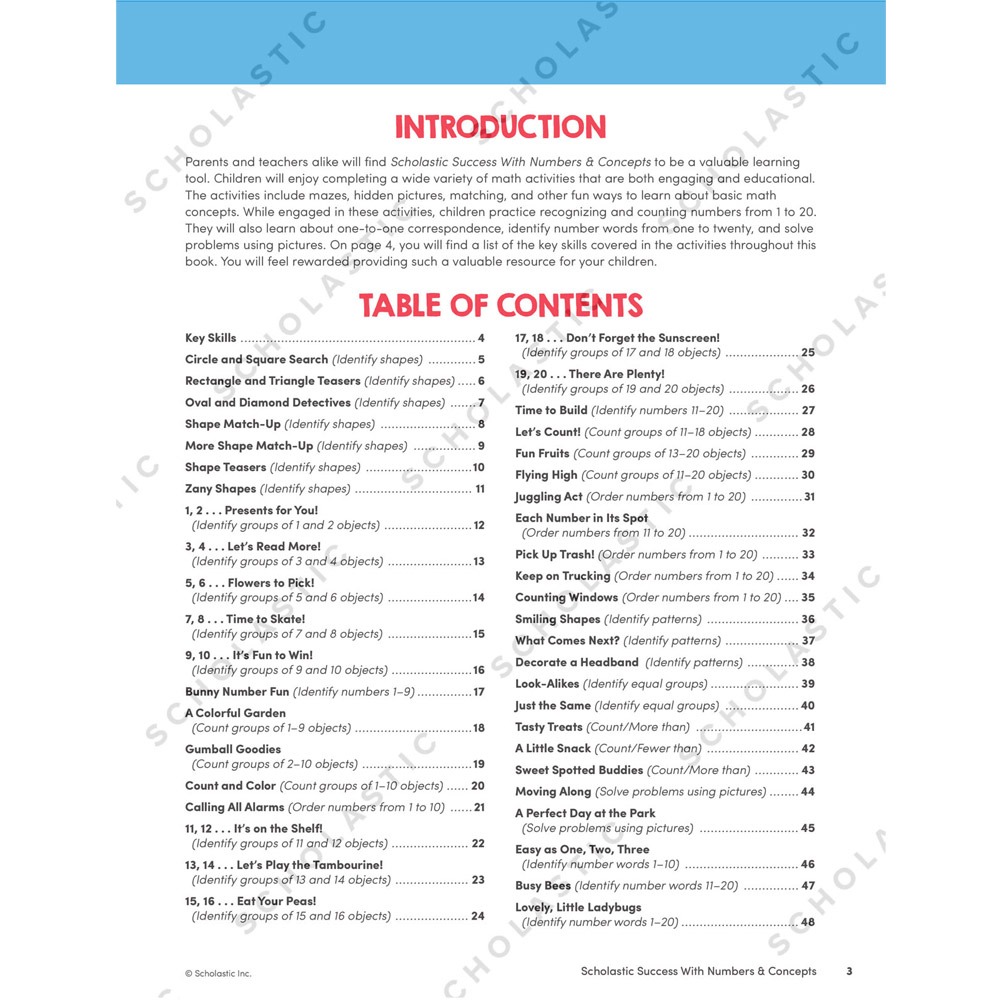 More than 40 practice pages that help children master early math skills. Through mazes, hidden pictures, matching, kids get practice in recognizing and counting numbers from 1 to 20. They also learn about one-to-one correspondence, identify number words one to twenty, and solve problems using pictures!