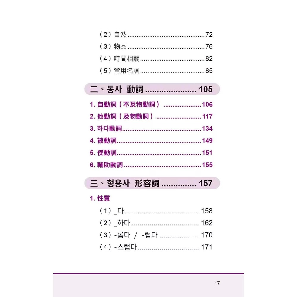 玄柄勳老師還特別針對「名詞」、「動詞」、「形容詞」及「副詞」補充了「同義詞」、「反義詞」、「衍生詞」、「延伸詞」及「範例」: