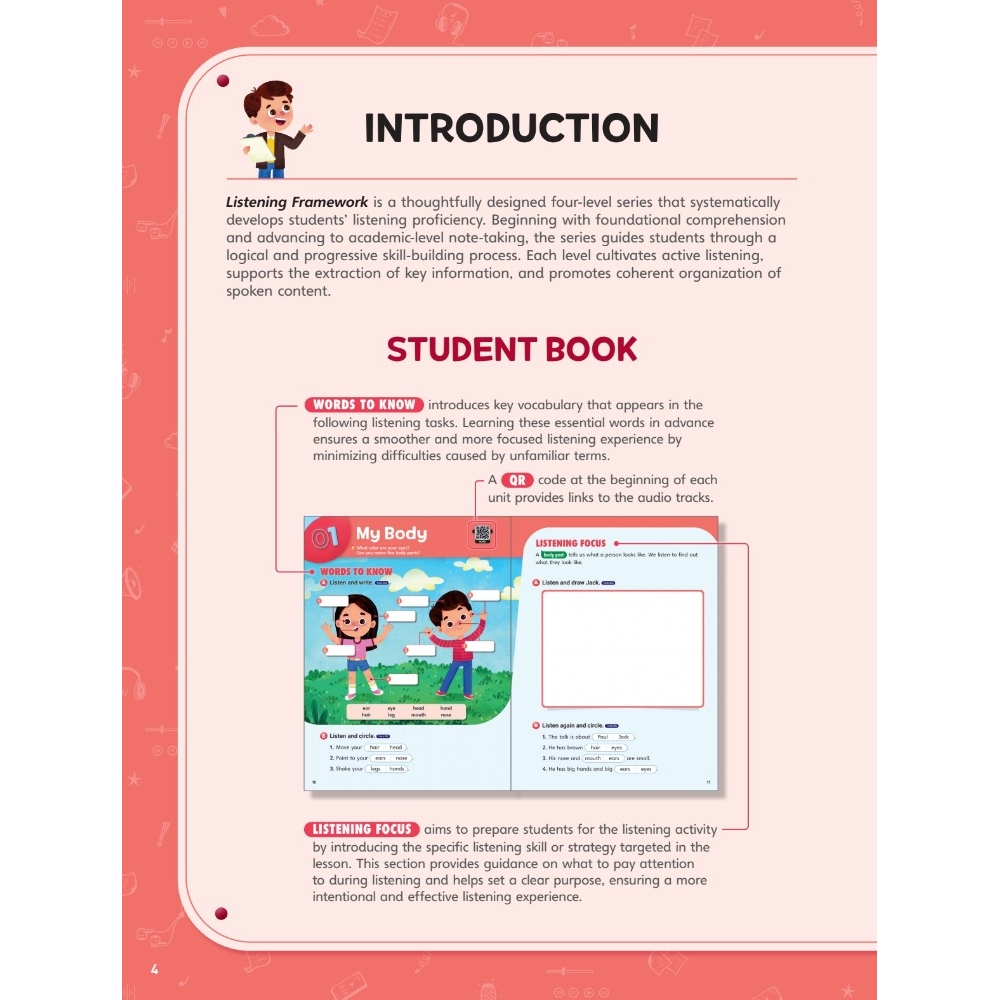 Listening Framework is a thoughtfully designed four-level series that systematically develops students’ listening proficiency.