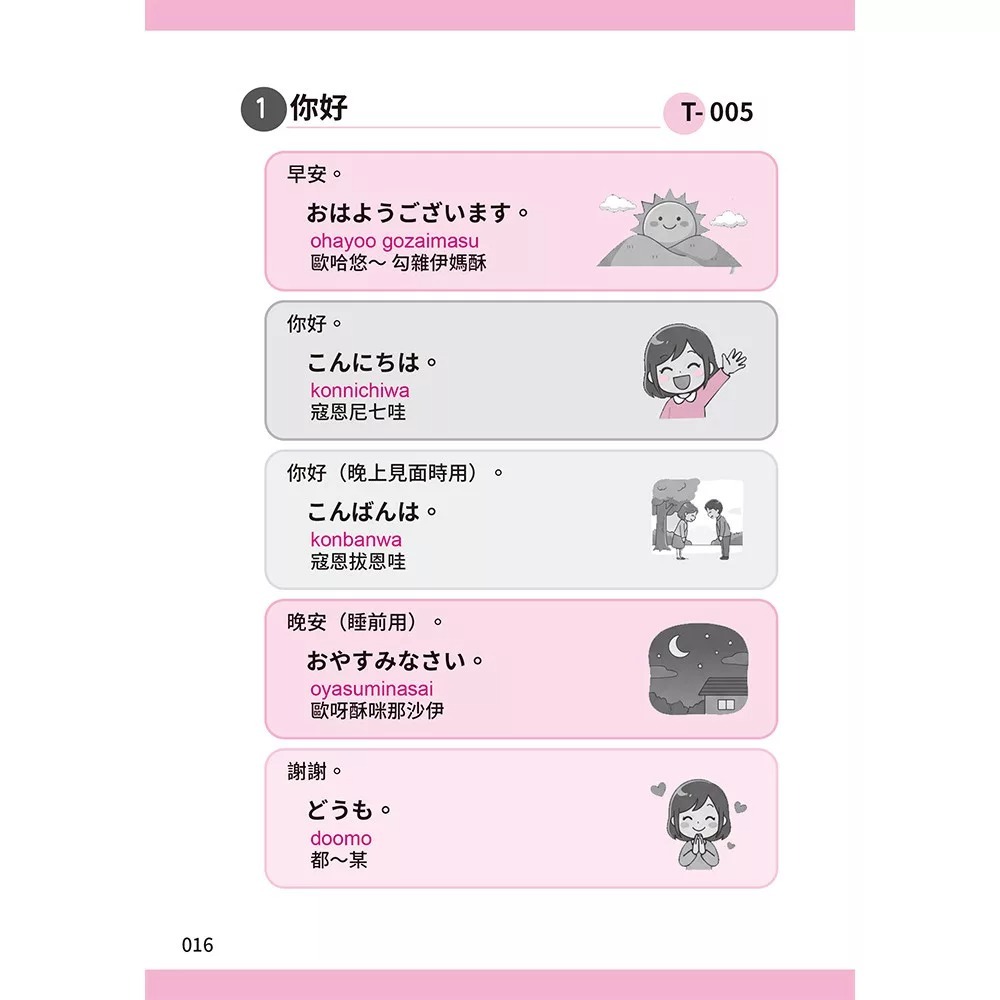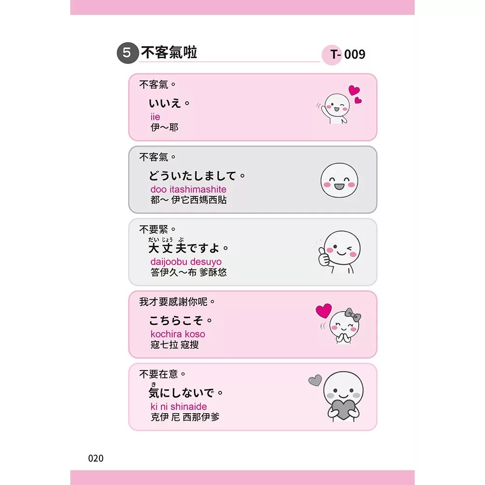 中文注音+羅馬拼音+日文句。不管你的發音「不標準」,還是真的說不出來,配合手指著書,日本人也一定能懂!