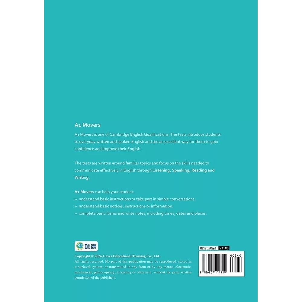1.全書依據 YLE A1 Movers 新制測驗題型所設計。